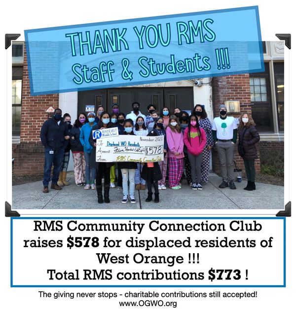 West Orange Schools staff and students continue to raise money for our town's displaced residents. Donations are still being collected. Click the "Donate Now" button above, or click HERE. Read Eric Keifer's article below.